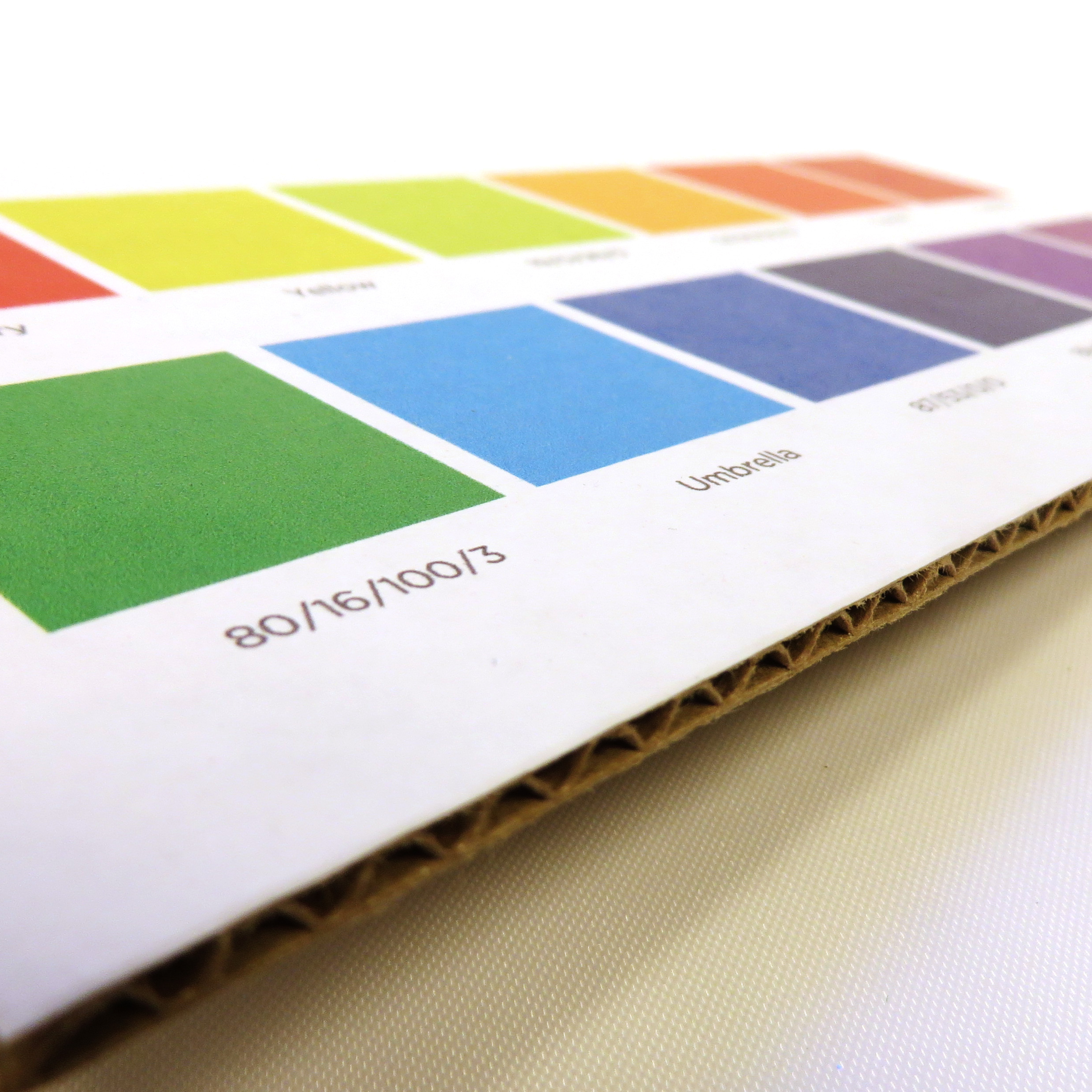 Select your test colors for this 4.5" x 8.5" sample swatch to test different colors printed on the same corrugated cardboard that is used for each of our products